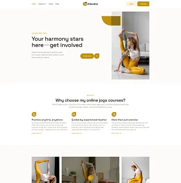 A calm and balanced design ideal for wellness studios, instructors, and mindfulness brands that want a welcoming and peaceful online presence.
